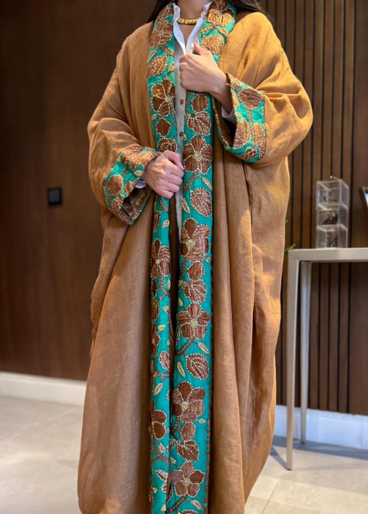 عبائة شتوية مطرزة من قماش ال لينن والمخمل من الداخل بالاضافة الى طرحة بلون ملائم