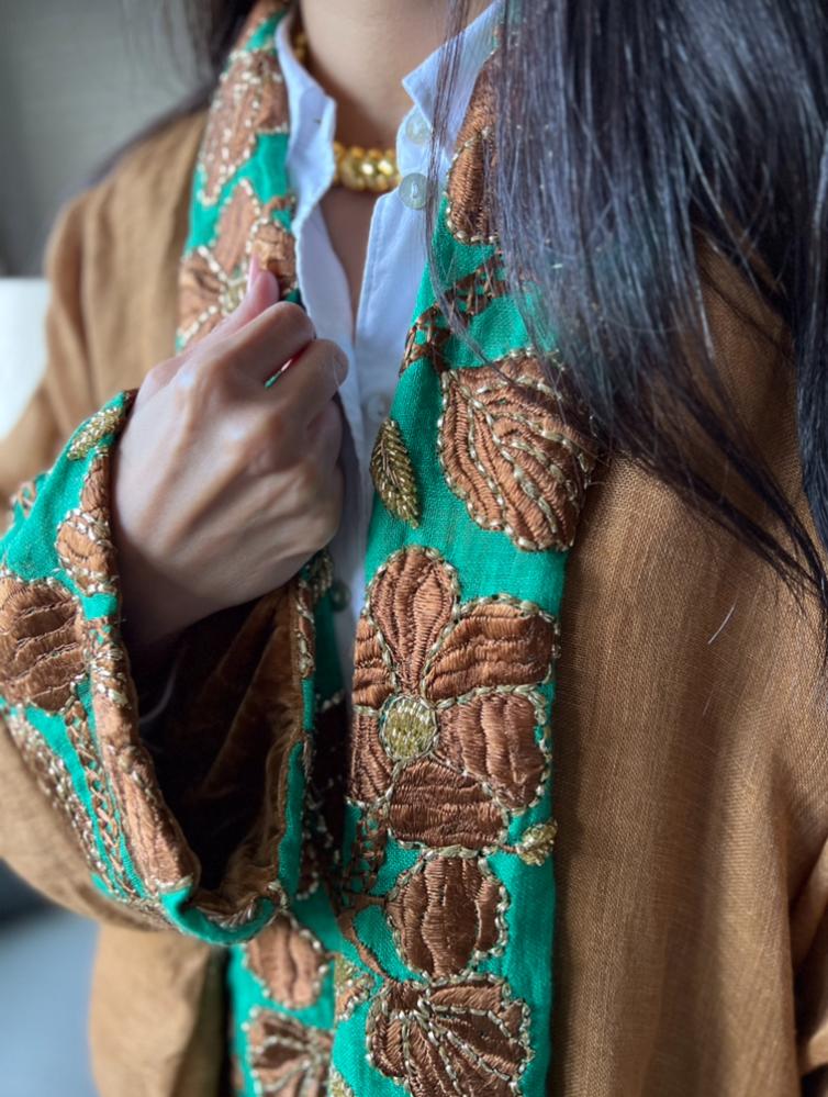 Ladies high neck kaftan linen