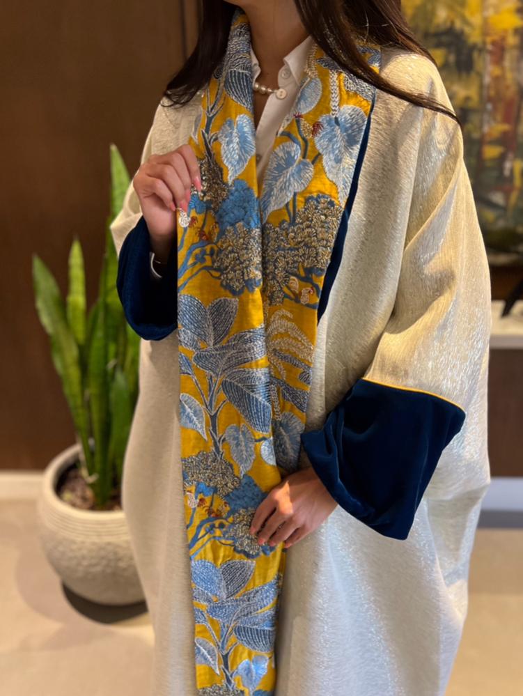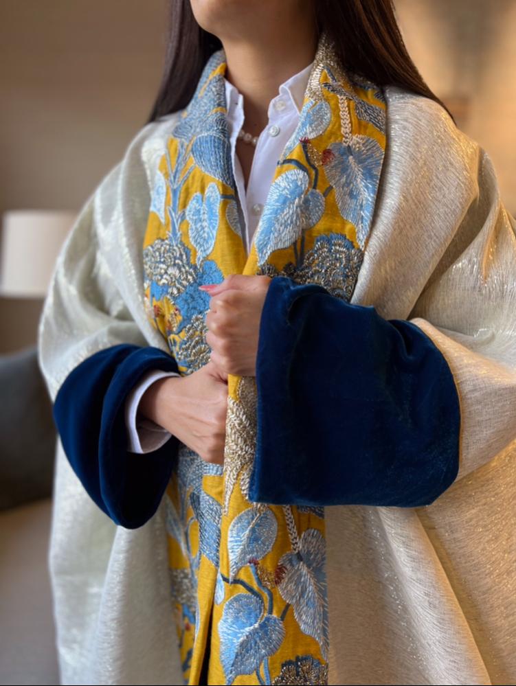 عبائة شتوية مطرزة من قماش ال لينن والمخمل من الداخل بالاضافة الى طرحة بلون ملائم
