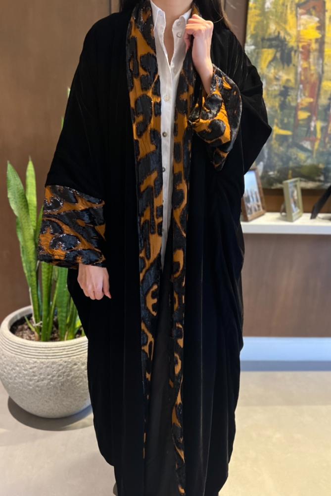 عبائة شتوية من قماش المخمل مع شيفون بالاطراف بالاضافة الى طرحة بلون ملائم