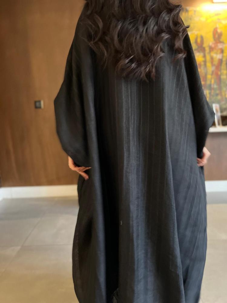 عبائة شتوية مطرزة من قماش ال لينن والمخمل من الداخل بالاضافة الى طرحة بلون ملائم