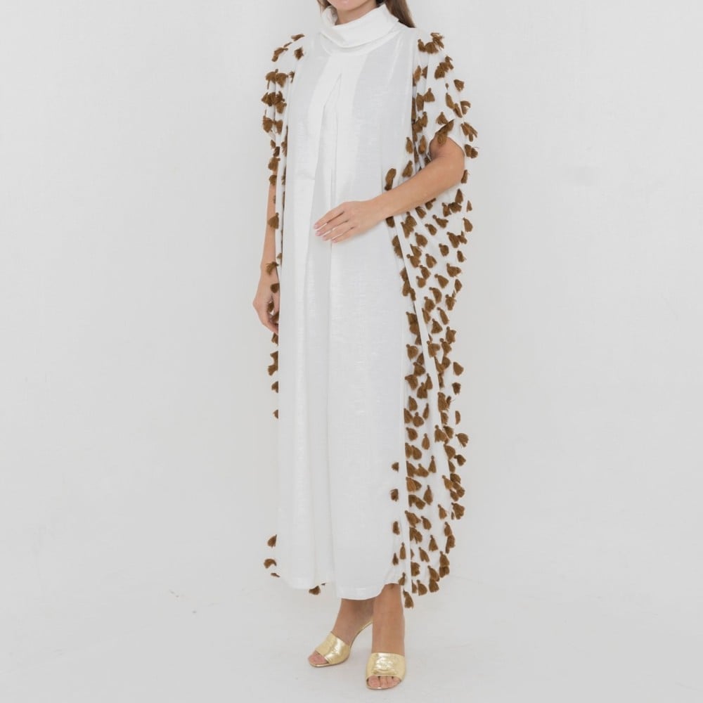 ladies high neck kaftan with feather
