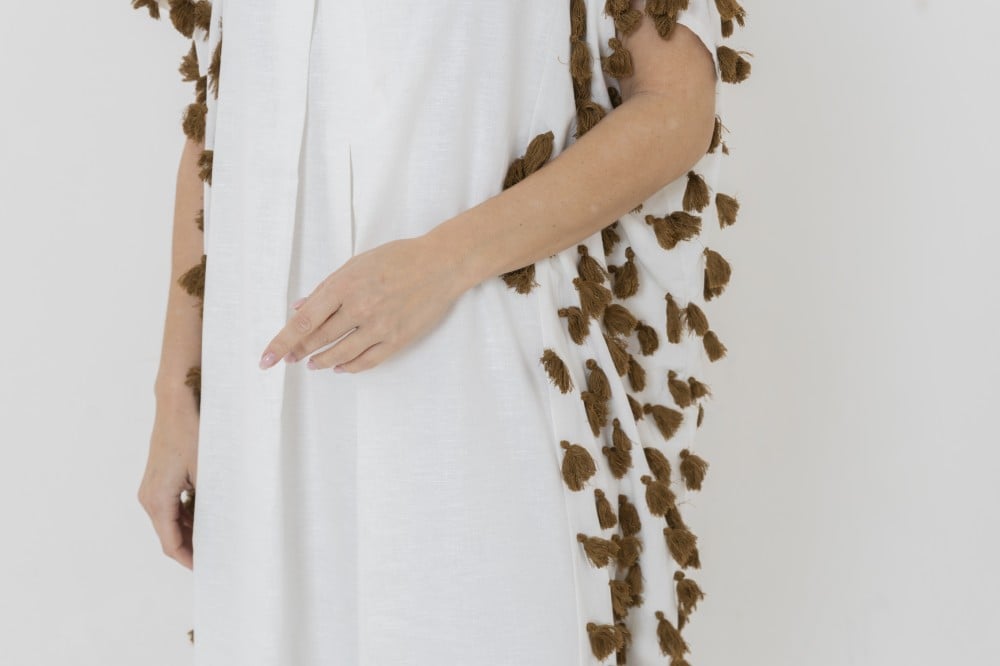Ladies kaftan with embroidery and wooden sequins lenin
