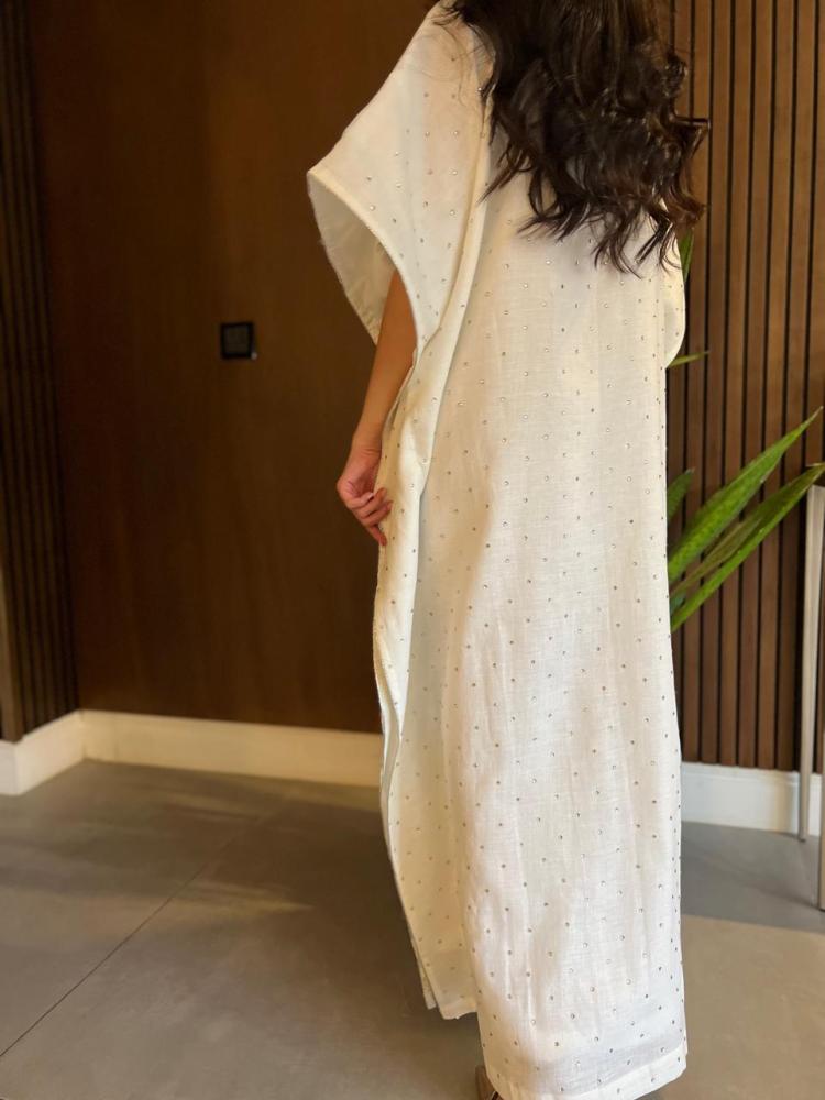 عبائة شتوية مطرزة من قماش ال لينن والمخمل من الداخل بالاضافة الى طرحة بلون ملائم
