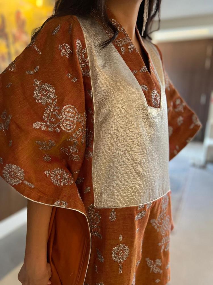 عبائة شتوية مطرزة من قماش ال لينن والمخمل من الداخل بالاضافة الى طرحة بلون ملائم
