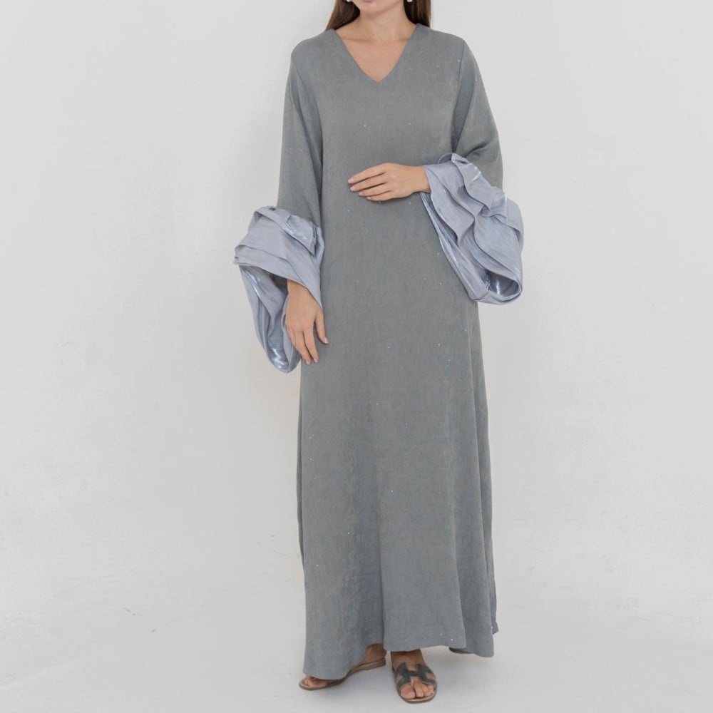 عبائة شتوية مطرزة من قماش ال لينن والمخمل من الداخل بالاضافة الى طرحة بلون ملائم