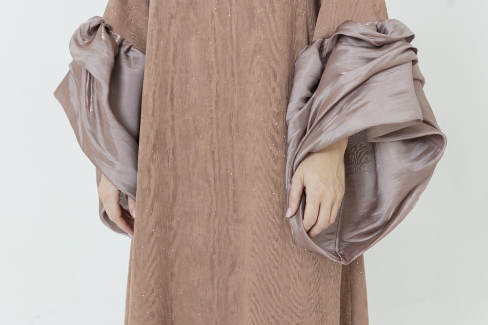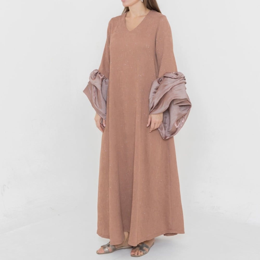 Ladies puffy sleeves dress crepe fabric with glitter