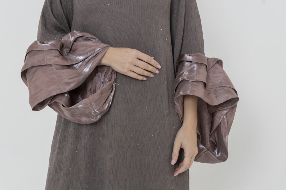 Ladies puffy sleeves dress crepe fabric with glitter