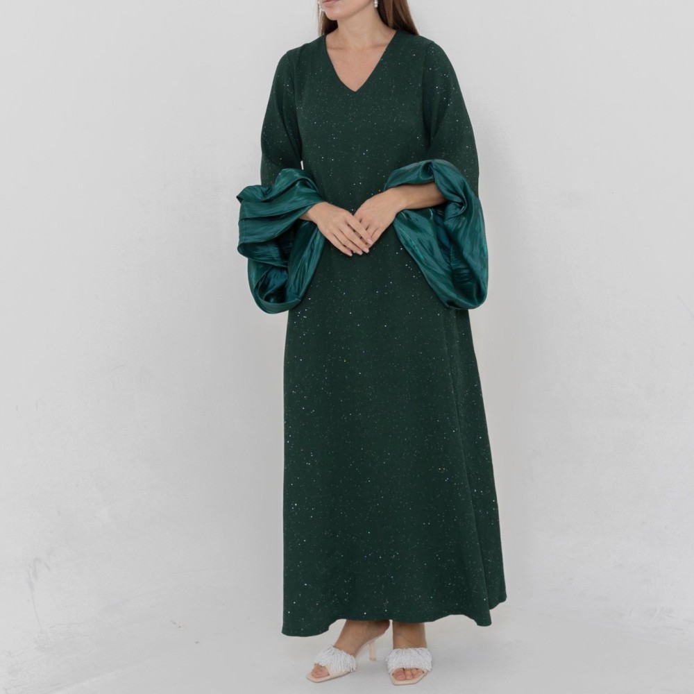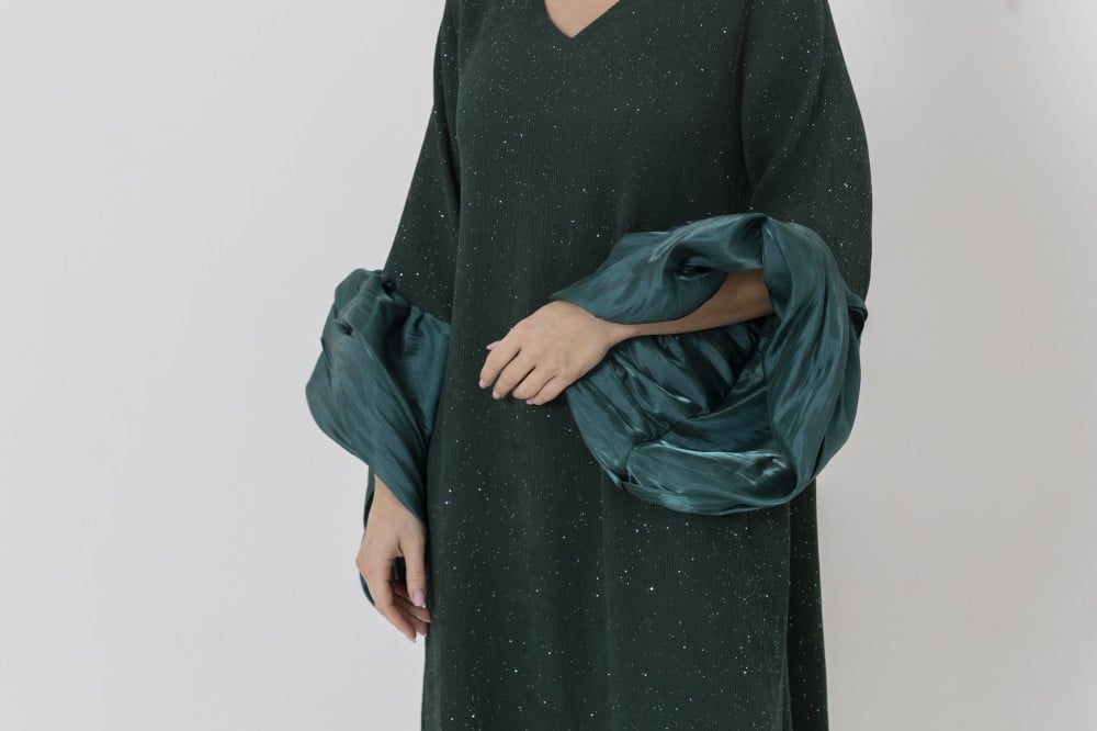 عبائة شتوية مطرزة من قماش ال لينن والمخمل من الداخل بالاضافة الى طرحة بلون ملائم