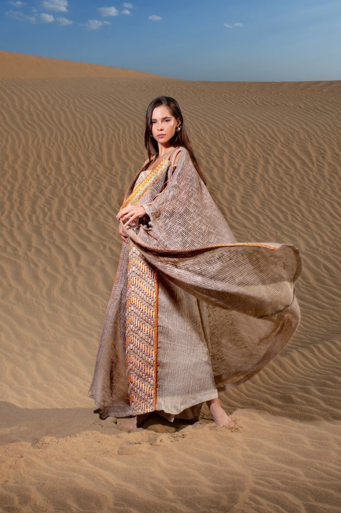 عبائة شتوية مطرزة من قماش ال لينن والمخمل من الداخل بالاضافة الى طرحة بلون ملائم