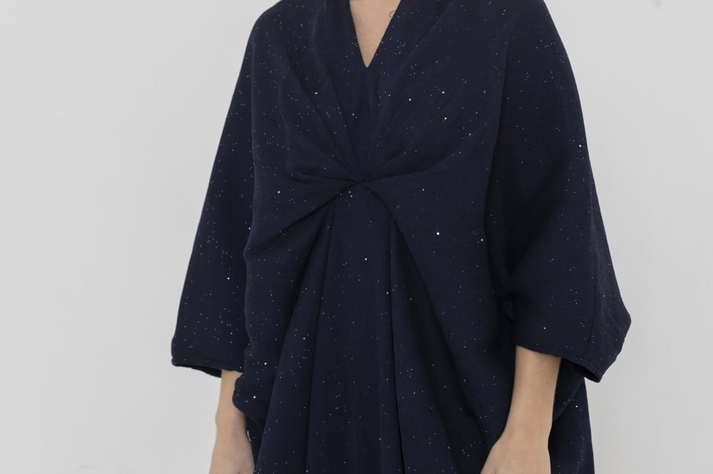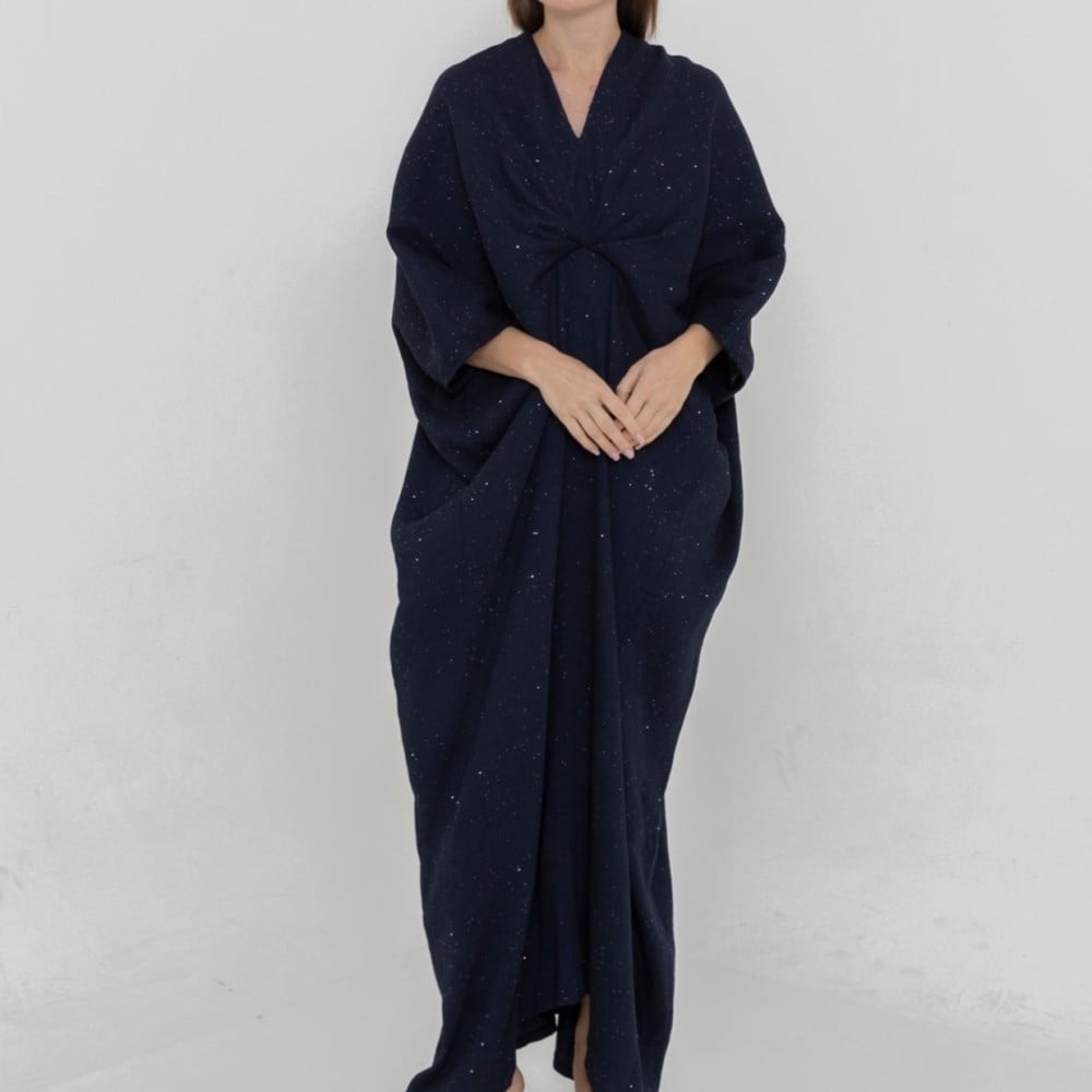 Ladies high neck kaftan with embroidery and sequins on the neck linen