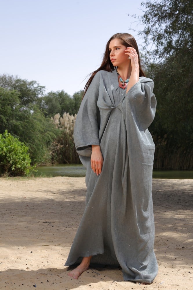 عبائة شتوية مطرزة من قماش ال لينن والمخمل من الداخل بالاضافة الى طرحة بلون ملائم