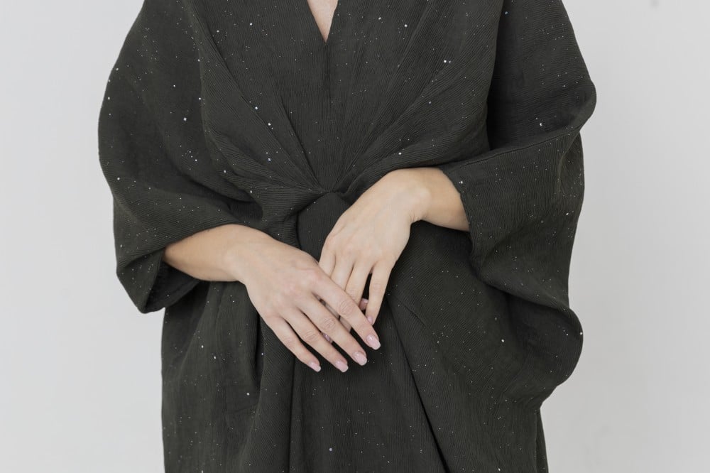 عبائة شتوية مطرزة من قماش ال لينن والمخمل من الداخل بالاضافة الى طرحة بلون ملائم