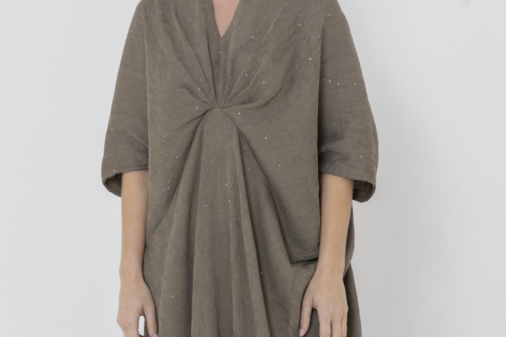 Ladies high neck kaftan with embroidery and sequins on the neck linen