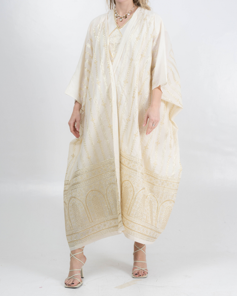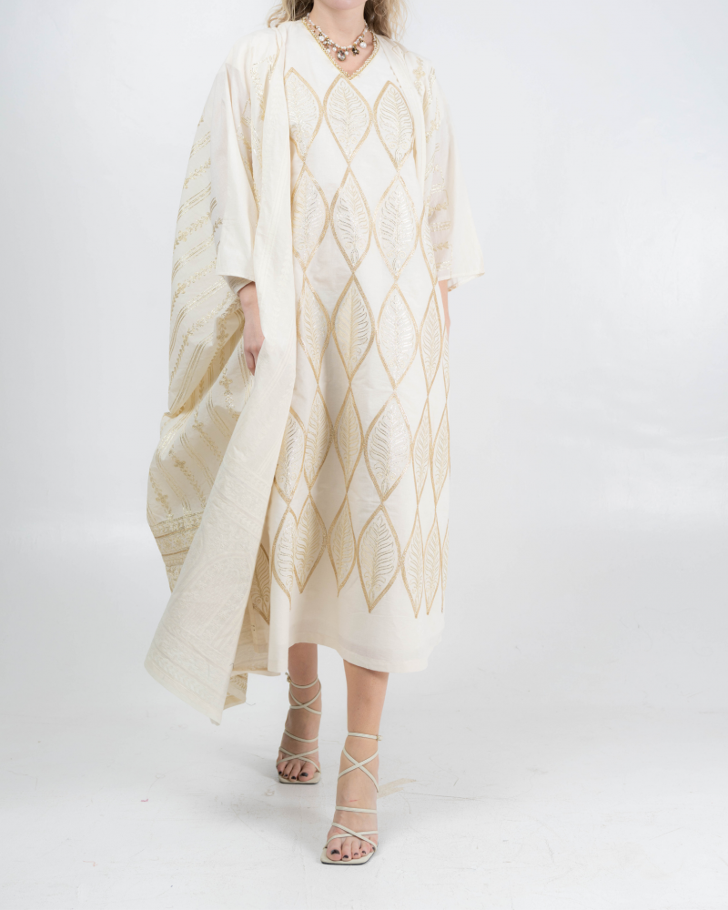 عبائة شتوية من قماش المخمل مع شيفون بالاطراف بالاضافة الى طرحة بلون ملائم