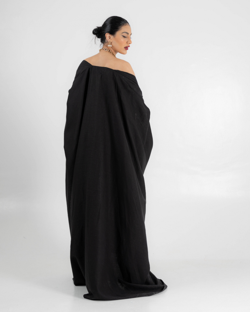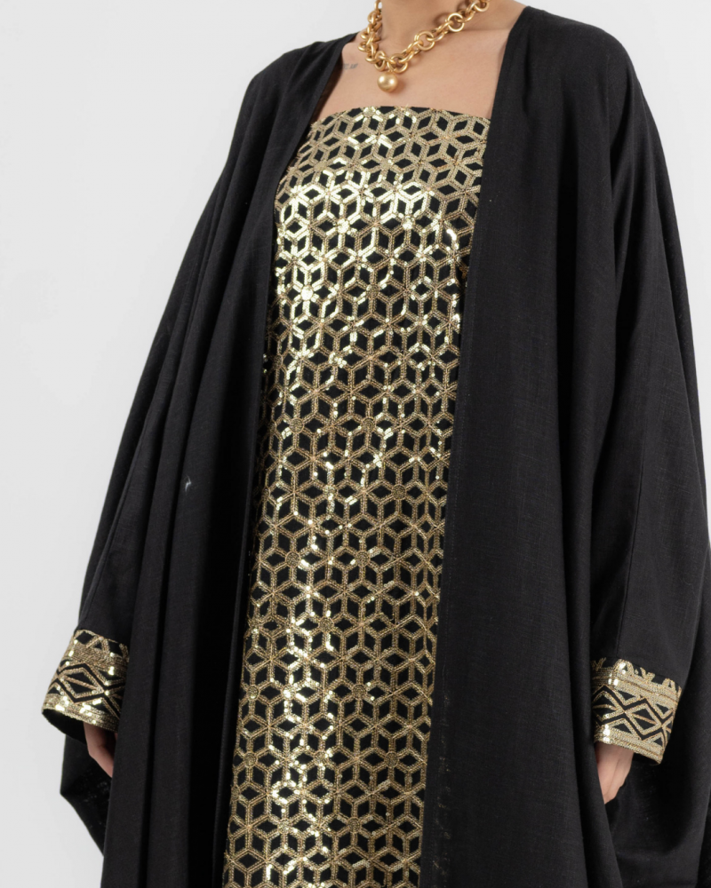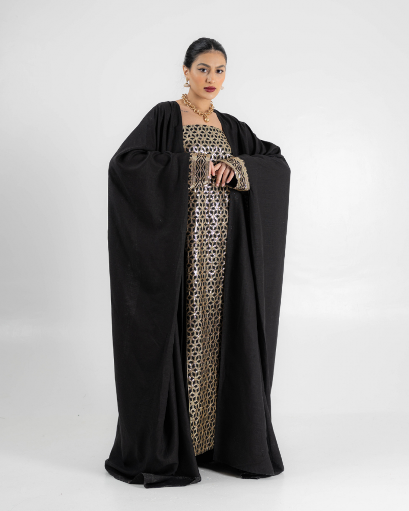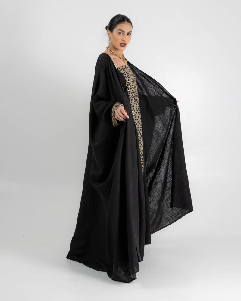 عبائة شتوية مطرزة من قماش ال لينن والمخمل من الداخل بالاضافة الى طرحة بلون ملائم