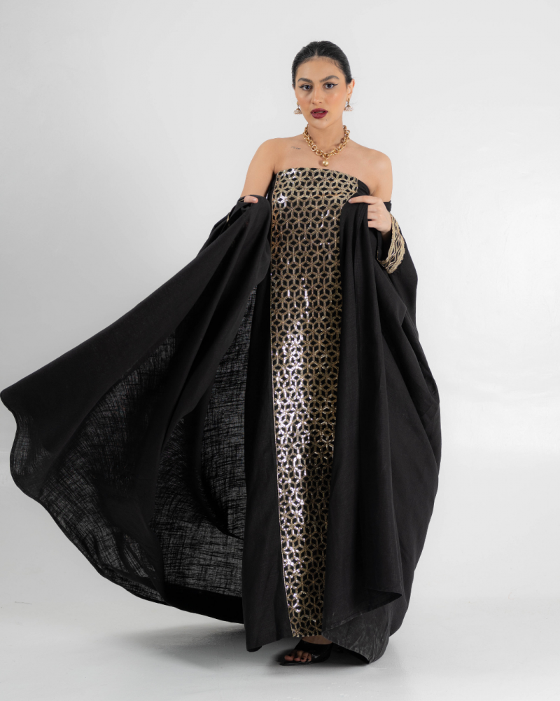 Two piece dress lenin with sequin