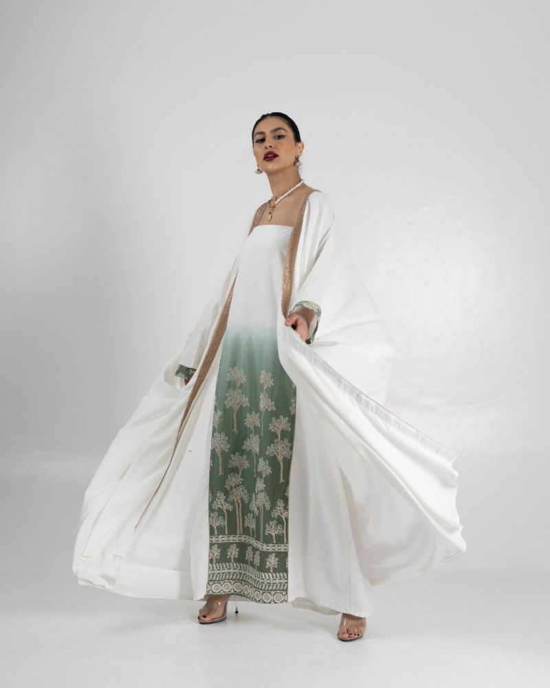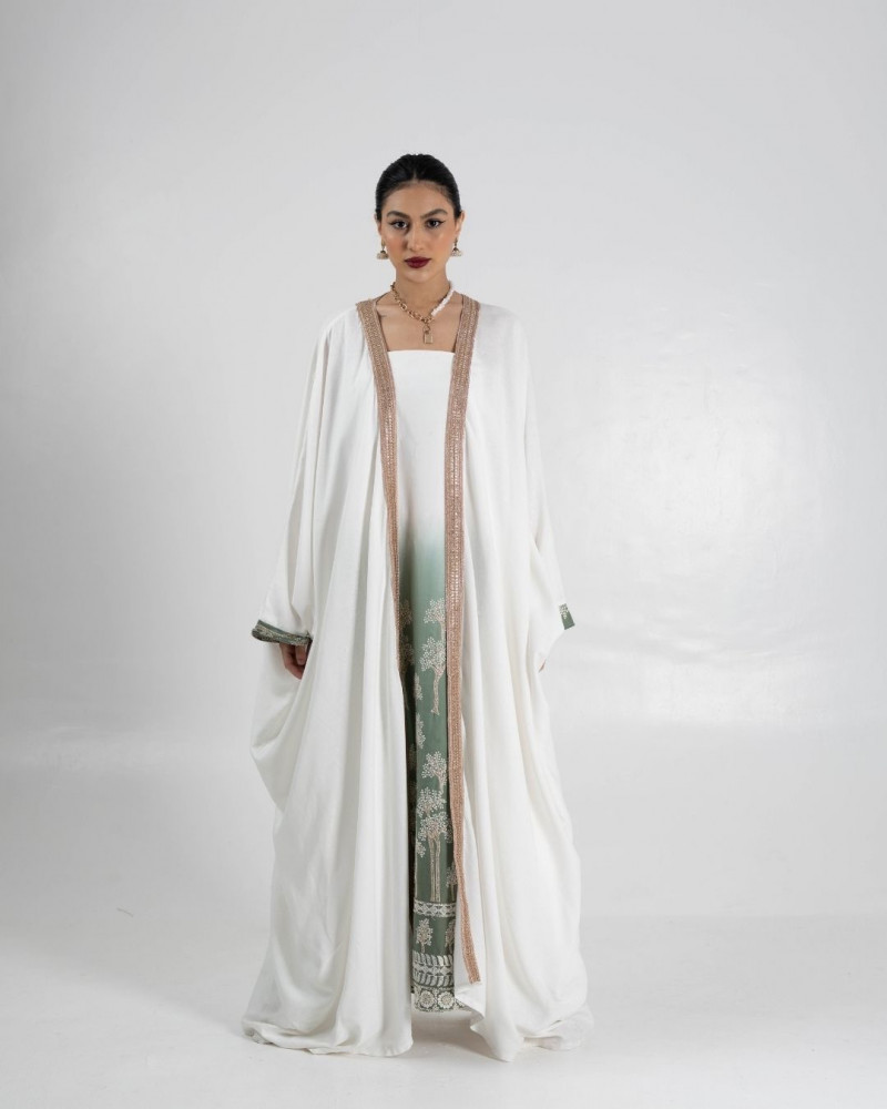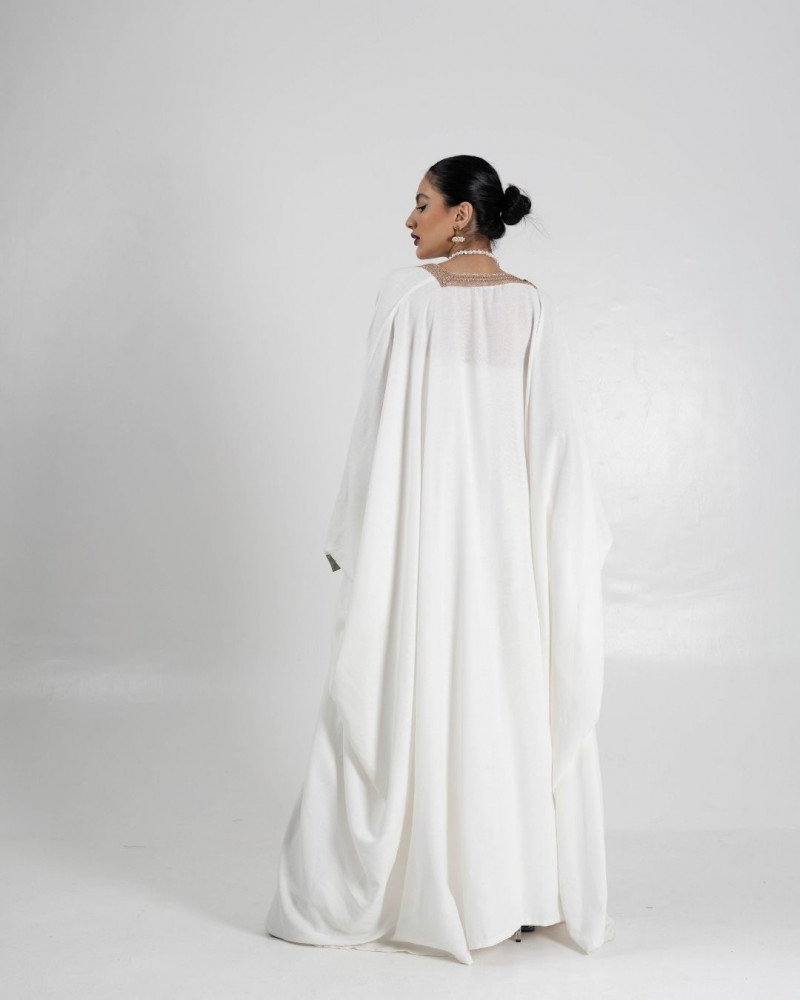عبائة شتوية مطرزة من قماش ال لينن والمخمل من الداخل بالاضافة الى طرحة بلون ملائم