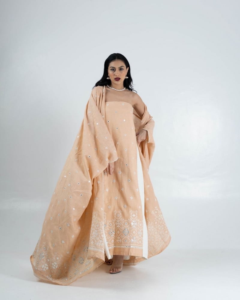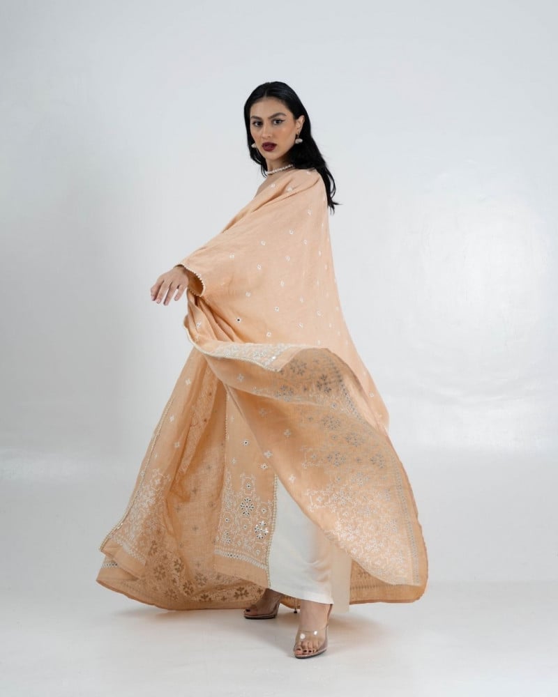 عبائة شتوية مطرزة من قماش ال لينن والمخمل من الداخل بالاضافة الى طرحة بلون ملائم