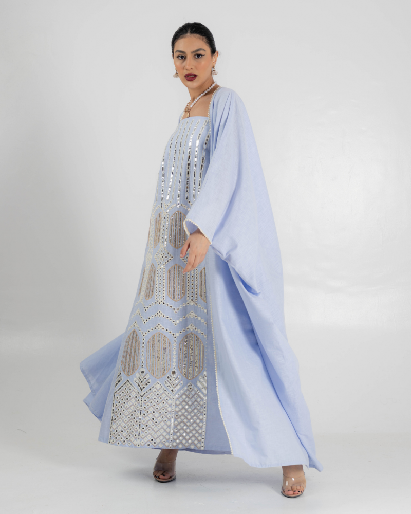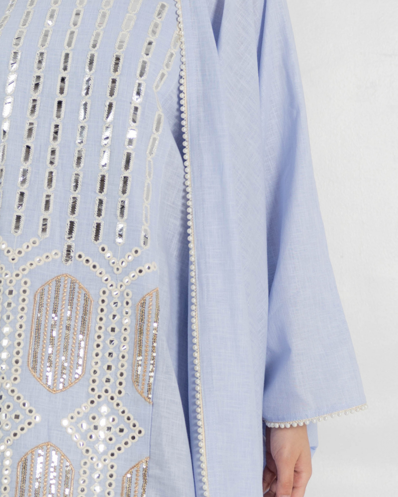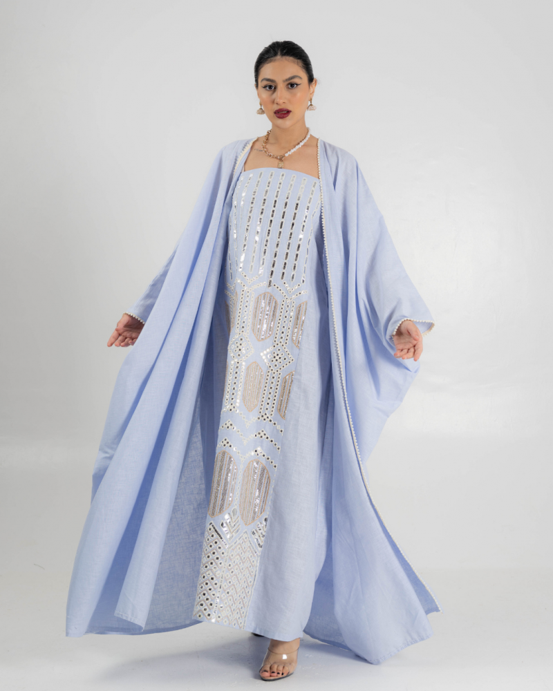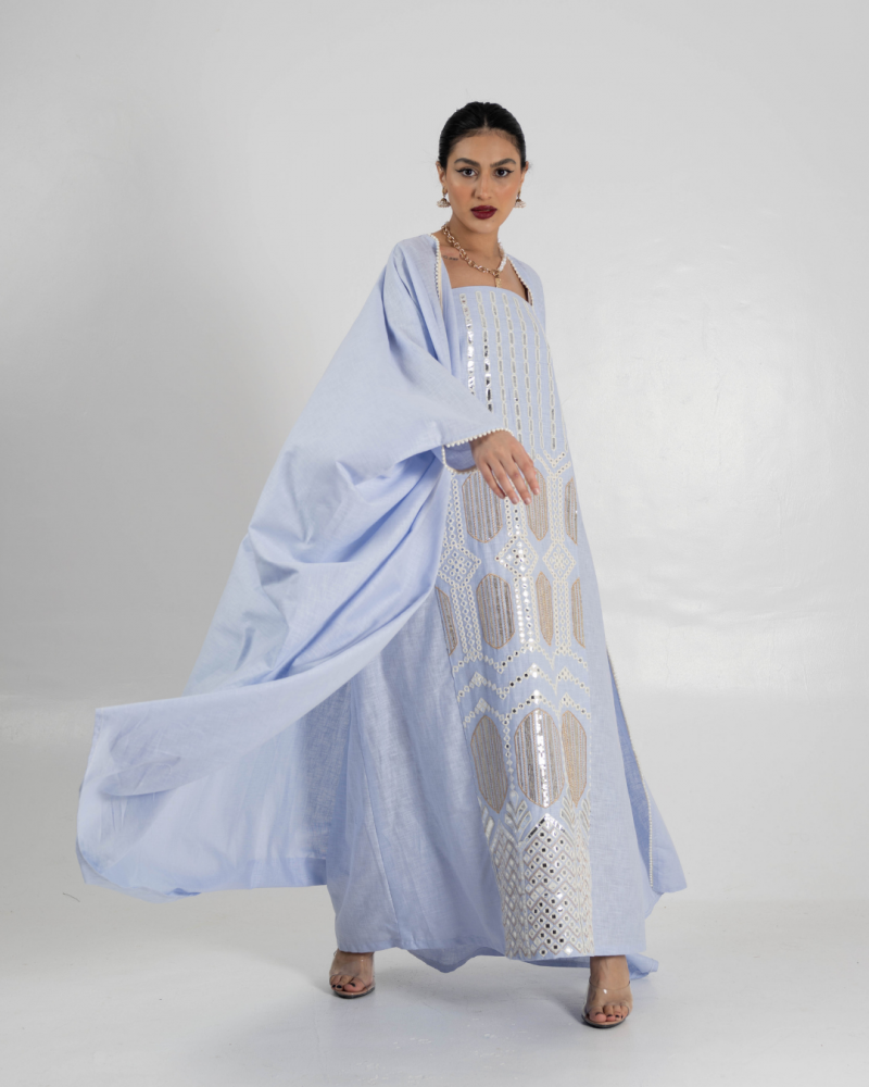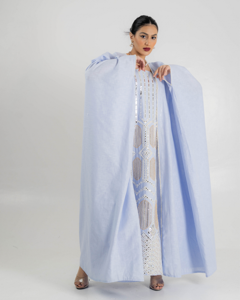 عبائة شتوية مطرزة من قماش ال لينن والمخمل من الداخل بالاضافة الى طرحة بلون ملائم